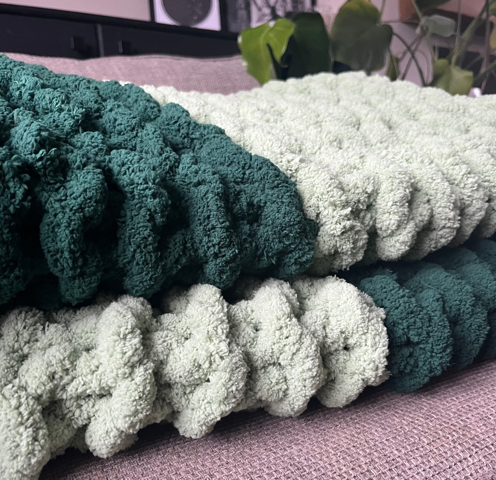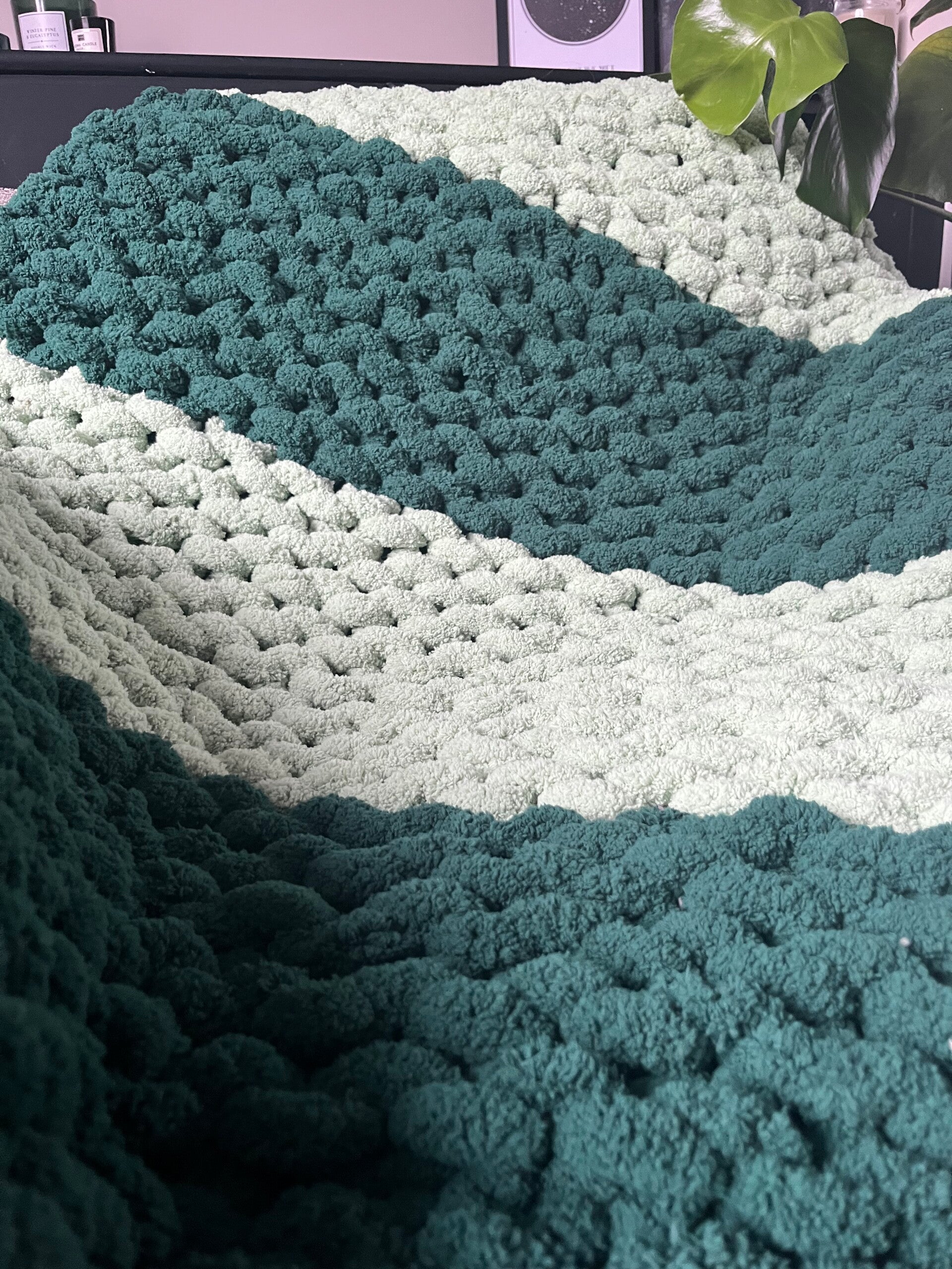 𝐀 𝐆𝐈𝐅𝐓 𝐅𝐀𝐕𝐎𝐑𝐈𝐓𝐄!!! 𝐖𝐫𝐚𝐩 𝐲𝐨𝐮𝐫𝐬𝐞𝐥𝐟 𝐢𝐧 𝐭𝐡𝐞 𝐠𝐞𝐧𝐭𝐥𝐞 𝐞𝐦𝐛𝐫𝐚𝐜𝐞 𝐨𝐟 𝐨𝐮𝐫 𝐡𝐚𝐧𝐝-𝐤𝐧𝐢𝐭𝐭𝐞𝐝 𝐁𝐥𝐚𝐧𝐤𝐞𝐭, where soothing green tones blend with stripes like a forest walk. Each stitch is thoughtfully crafted by hand to create your personal haven of peace, perfect for those precious moments when you need to pause and recharge your spirit.